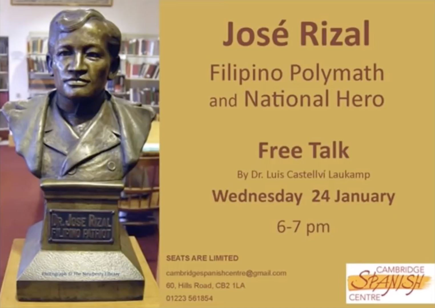 Cambridge Spanish Centre hosted a free talk about the life and work of Jose Rizal, Filipino Polymath and National Hero